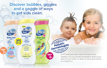 I am so excited! I have some new products to tell you about and a giveaway! Two of my readers will each win a coupon for a Free bottle of Dial Baby Body + Hair Wash or Dial Kids Foaming Hand Wash (note, it’s one coupon, but you get to choose which product you want for Free – just one product).