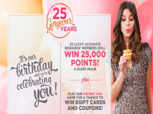 Ulta “Ultamate Birthday Giveaway” Instant Win Game & Sweepstakes – Win 25,000 Ulta Rewards points!