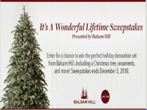 SWEEPSTAKES ENTRY PERIOD – Enter between 1 pm Eastern Standard Time (“EST”) on November 14, 2018 and 1 pm EST on December 26, 2018.