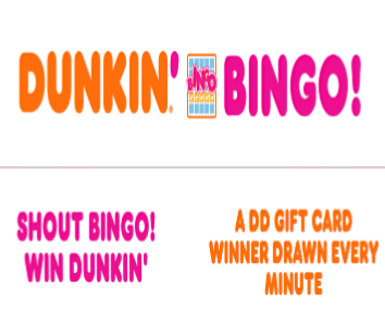 PRIZES – Instant Win Game Prizes: $5 Dunkin’ eGift Card or $5 Dunkin’ Gift Card. Approximate Retail Value (“ARV”): $5.00