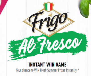 SWEEPSTAKES ENTRY PERIOD – The Saputo Cheese USA Inc. Frigo® Al Fresco Instant Win Game and Sweepstakes starts at 12:00:01 PM Eastern Time (“ET”) on June 1, 2018, and ends at 11:59:59 PM ET on August 31, 2018.