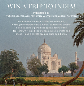 PRIZES – The Grand Prize Winner will receive one (1) Grand Prize of a trip of his / her choice to either: India, Thailand, Mexico or Costa Rica, having a maximum Approximate Retail Value (“ARV”) of $5,000. The Grand Prize consists of a trip (as defined herein) for the Grand Prize Winner and one (1) guest (the “Travel Companion”). Trip will include; (a) round trip coach class air transportation for Grand Prize Winner and one (1) guest from a major commercial airport near Grand Prize Winner’s home (as determined by Sponsor in their sole discretion) to either India, Thailand, Mexico or Costa Rica; (b) six (6) nights standard hotel accommodations (one room, double occupancy, room and tax only) at a hotel to be determined by the Sponsor in their sole discretion); (c) ground transportation to and from airport and hotel in destination country; (d) dinner or a culinary experience in the destination country; and (e) cash in the amount of $250 USD to be used as spending money or at Grand Prize Winner’s sole choosing (to be awarded in the form of a check). Trip must be taken by April 30, 2019 or Grand Prize will be forfeited