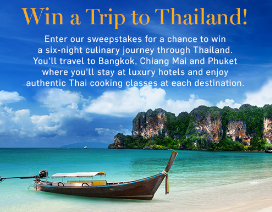 PRIZES – The Grand Prize Winner will receive one (1) Grand Prize of a trip of his / her choice to either: India, Thailand, Mexico or Costa Rica, having a maximum Approximate Retail Value (“ARV”) of $5,000. The Grand Prize consists of a trip (as defined herein) for the Grand Prize Winner and one (1) guest (the “Travel Companion”). Trip will include; (a) round trip coach class air transportation for Grand Prize Winner and one (1) guest from a major commercial airport near Grand Prize Winner’s home (as determined by Sponsor in their sole discretion) to either India, Thailand, Mexico or Costa Rica; (b) six (6) nights standard hotel accommodations (one room, double occupancy, room and tax only) at a hotel to be determined by the Sponsor in their sole discretion); (c) ground transportation to and from airport and hotel in destination country; (d) dinner or a culinary experience in the destination country; and (e) cash in the amount of $250 USD to be used as spending money or at Grand Prize Winner’s sole choosing (to be awarded in the form of a check). Trip must be taken by April 30, 2019 or Grand Prize will be forfeited