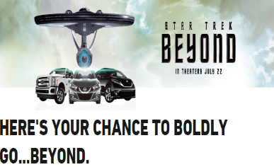 Trip to “Star Trek Beyond” Movie Premiere for Two Drawing: One (1) Trip to the “Star Trek Beyond” Movie Premiere for Two verified Drawing winner will receive a trip for 2 to the Star Trek: Beyond Movie Premiere in San Diego on July 20, 2016, including:
