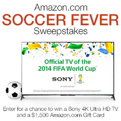 Amazon.com Soccer Fever Sweepstakes – Win a 65″ Sony TV & a $1,500 Amazon gift card!